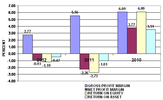 2012 and 2011 respectively. This ratio measures the efficiency of the company