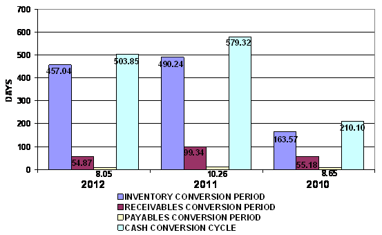 And Inventory turnover has increased from 0.74 times in year 2011 to 0.8 times
