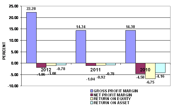 in 2012 and 2011 respectively. This ratio measures the efficiency of the