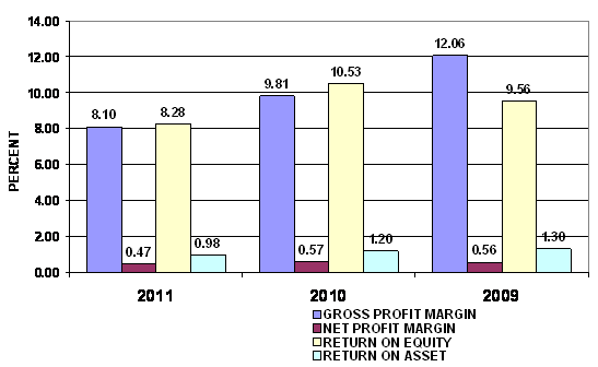2011 and 2010 respectively. This ratio measures the efficiency of the company in