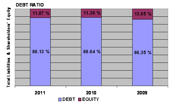 times in 2011 and 2010 respectively. This ratio is determined by dividing total