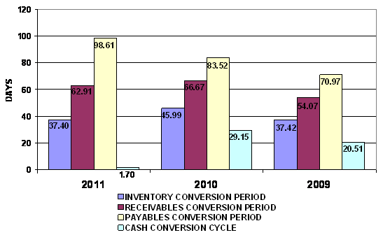 And Inventory turnover has increased from 7.94 times in year 2010 to 9.76 times