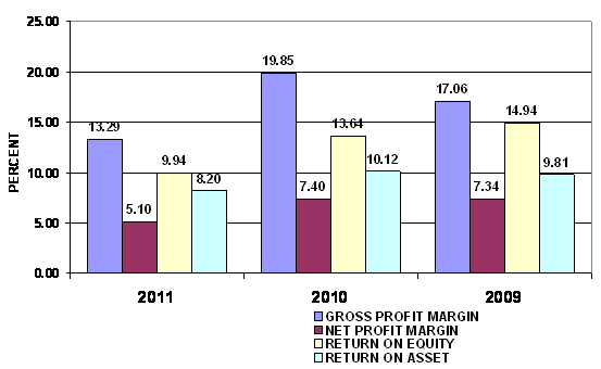 2011 and 2010 respectively. This ratio measures the efficiency of the company