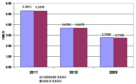 times in 2011 and 2010 respectively. This ratio is determined by dividing total