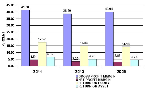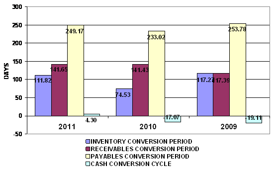 2011 and 2010 respectively. This ratio measures the efficiency of the company