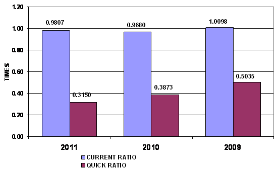 times in 2011 and 2010 respectively. This ratio is determined by dividing total