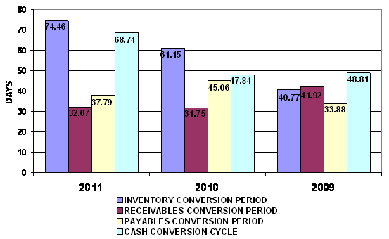end of 2010 to 74 days at the end of 2011. This represents a negative trend.