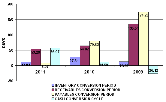end of 2010 to 12 days at the end of 2011. This represents a positive trend.