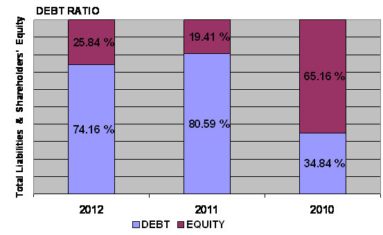 times in 2012 and 2011 respectively. This ratio is determined by dividing total