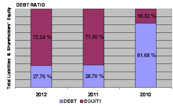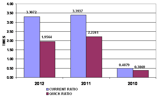 times in 2012 and 2011 respectively. This ratio is determined by dividing total