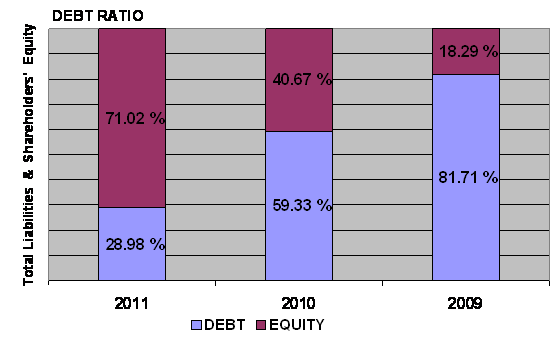 2011 and 2010 respectively. This ratio measures the efficiency of the company in