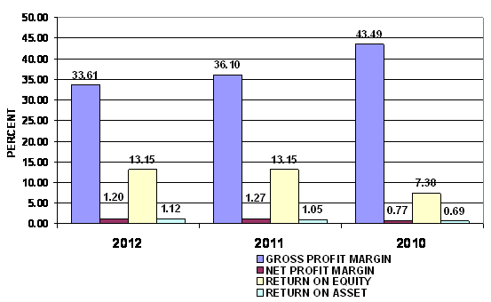 2012 and 2011 respectively. This ratio measures the efficiency of the company