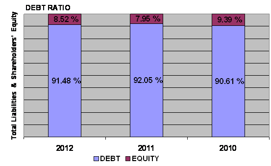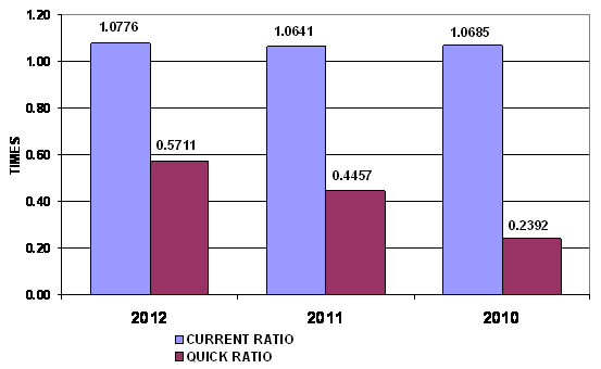times in 2012 and 2011 respectively. This ratio is determined by dividing total