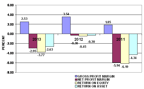 decreased from 2012. This would suggest the company had deteriorated in the