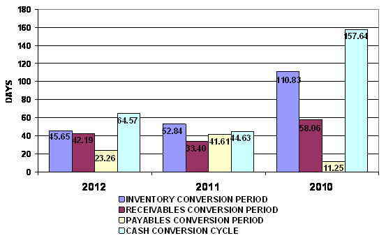 end of 2011 to 46 days at the end of 2012. This represents a positive trend.
