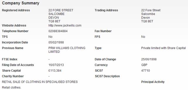 JACK WILLS LIMITED |