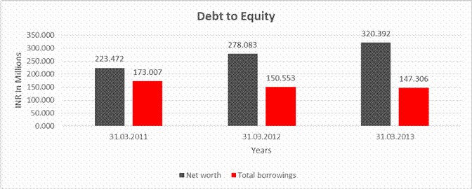 structure and gearing as on March 2014. Management has reported a slight dip in its revenue as well as margins