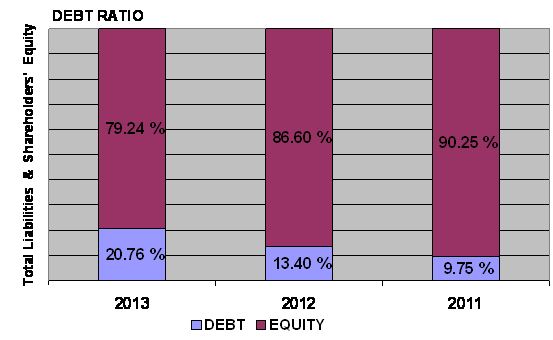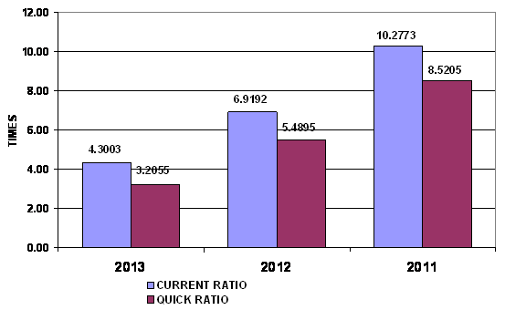 times in 2013 and 2012 respectively. This ratio is determined by dividing total