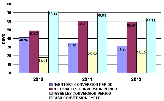 end of 2011 to 41 days at the end of 2012. This represents a negative trend.