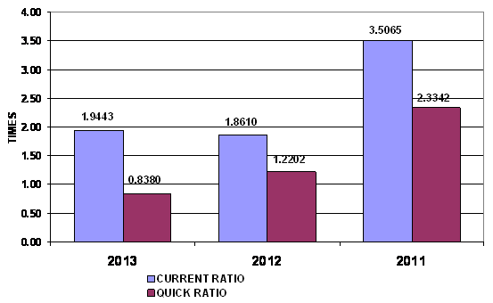 times in 2013 and 2012 respectively. This ratio is determined by dividing total