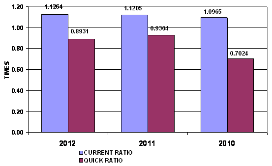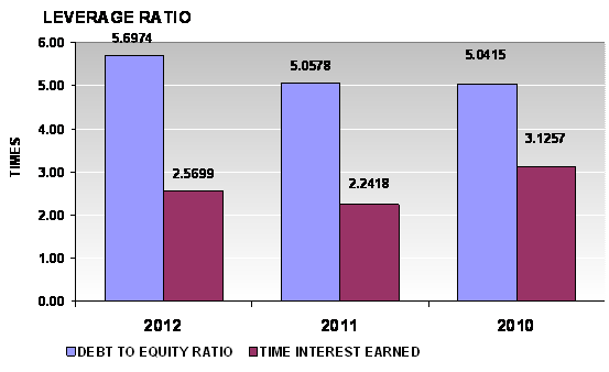 times in 2012 and 2011 respectively. This ratio is determined by dividing total