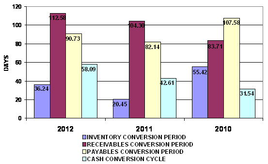 end of 2011 to 36 days at the end of 2012. This represents a negative trend.