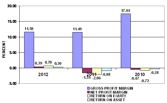 2012 and 2011 respectively. This ratio measures the efficiency of the company