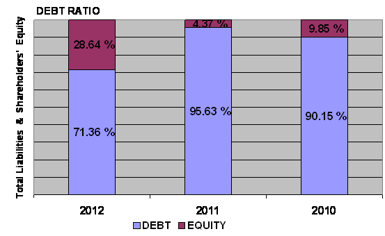 times in 2012 and 2011 respectively. This ratio is determined by dividing total