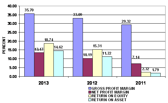 2013 and 2012 respectively. This ratio measures the efficiency of the company in