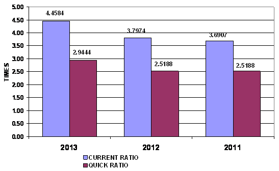 times in 2013 and 2012 respectively. This ratio is determined by dividing total