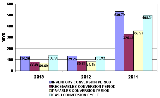 end of 2012 to 130 days at the end of 2013. This represents a negative trend.