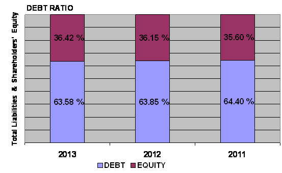 times in 2013 and 2012 respectively. This ratio is determined by dividing total