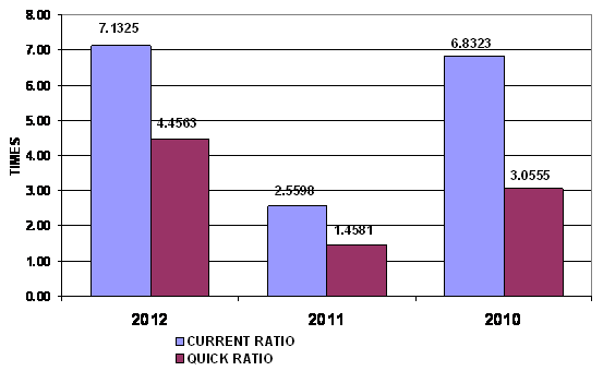 times in 2012 and 2011 respectively. This ratio is determined by dividing total