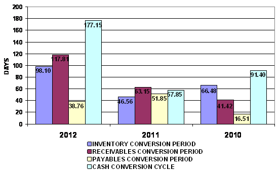 end of 2011 to 98 days at the end of 2012. This represents a negative trend.