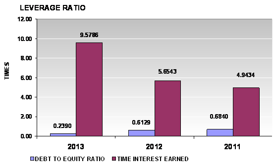 times in 2013 and 2012 respectively. This ratio is determined by dividing total