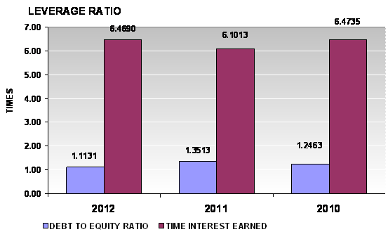 times in 2012 and 2011 respectively. This ratio is determined by dividing total