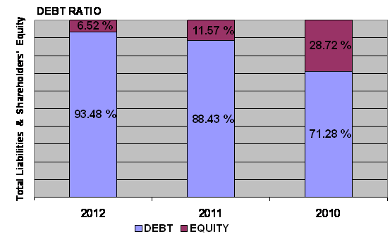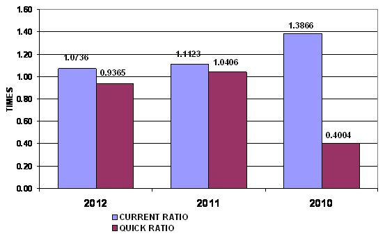 times in 2012 and 2011 respectively. This ratio is determined by dividing total