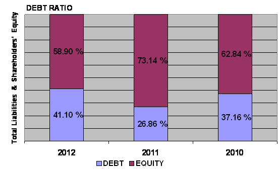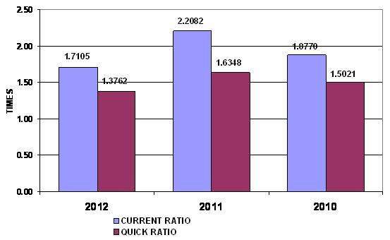 times in 2012 and 2011 respectively. This ratio is determined by dividing total