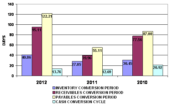 end of 2011 to 41 days at the end of 2012. This represents a negative trend.