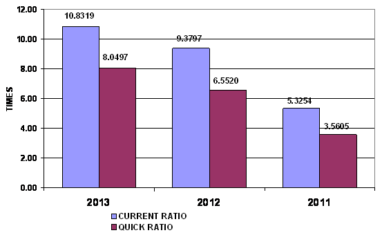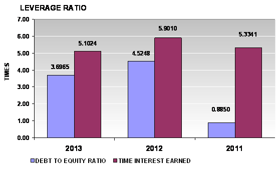 times in 2013 and 2012 respectively. This ratio is determined by dividing total