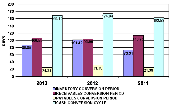 end of 2012 to 87 days at the end of 2013. This represents a positive trend.