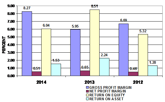 as 4.35 and 4.85 in 2014 and 2013 respectively. This ratio measures the