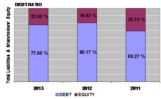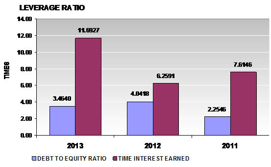 times in 2013 and 2012 respectively. This ratio is determined by dividing total