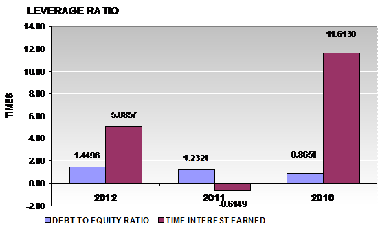 times in 2012 and 2011 respectively. This ratio is determined by dividing total