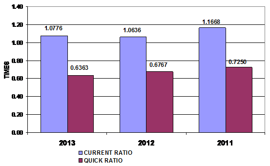 times in 2013 and 2012 respectively. This ratio is determined by dividing total