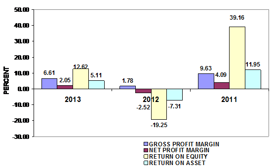 2013 and 2012 respectively. This ratio measures the efficiency of the company in