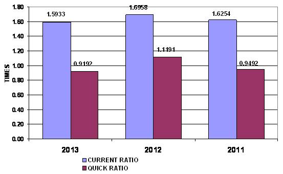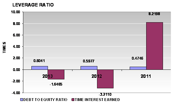 times in 2013 and 2012 respectively. This ratio is determined by dividing total