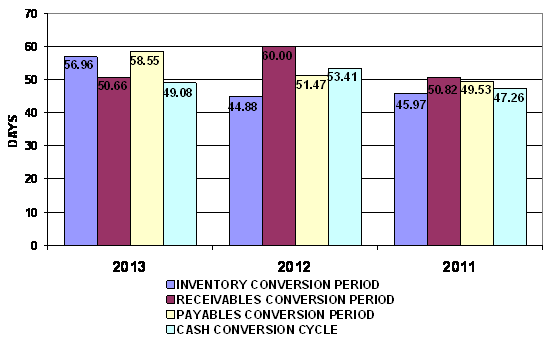 end of 2012 to 57 days at the end of 2013. This represents a negative trend.