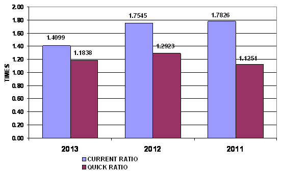 times in 2013 and 2012 respectively. This ratio is determined by dividing total