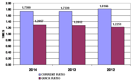 times in 2014 and 2013 respectively. This ratio is determined by dividing total